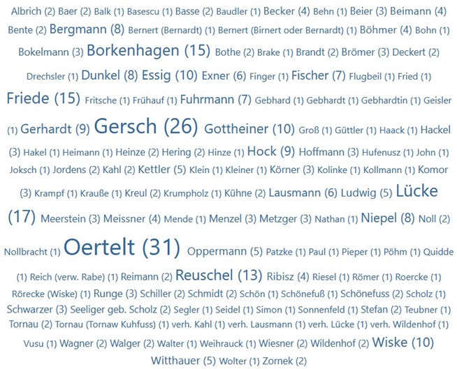 Lücke | Märtens | Schönefuss | Bahn | Tornau | Joksch | Hagedorn | Kettler | Basse | Bokelmann |